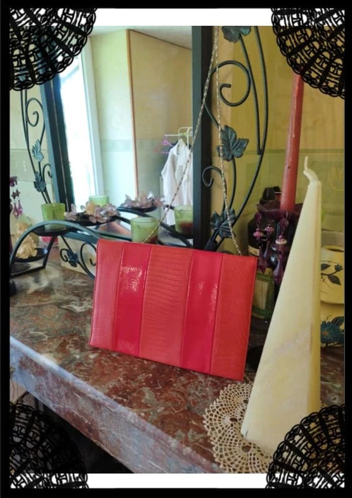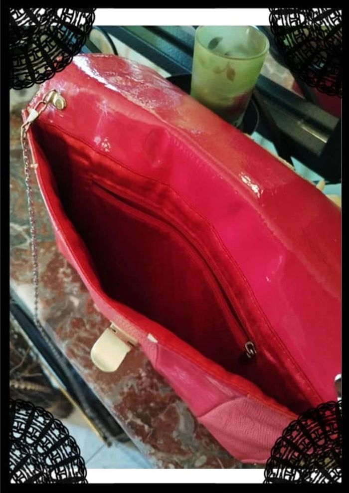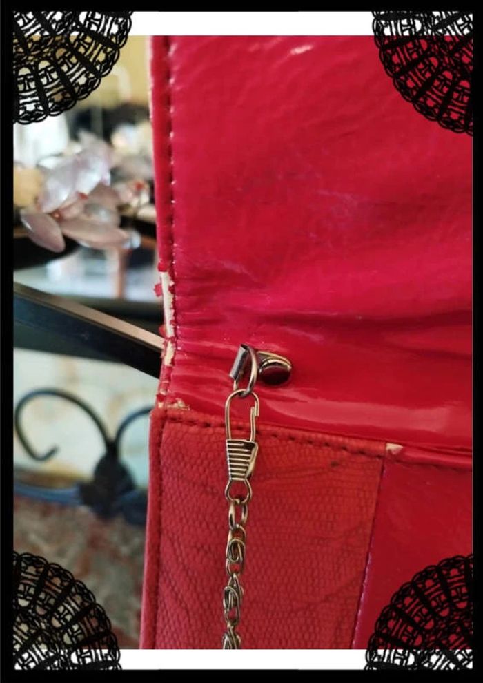 Sac à main pochette rouge similicuir à chaines - photo numéro 6