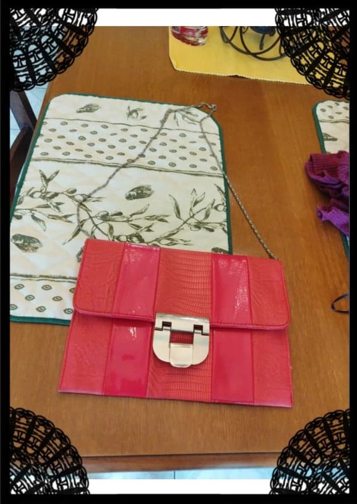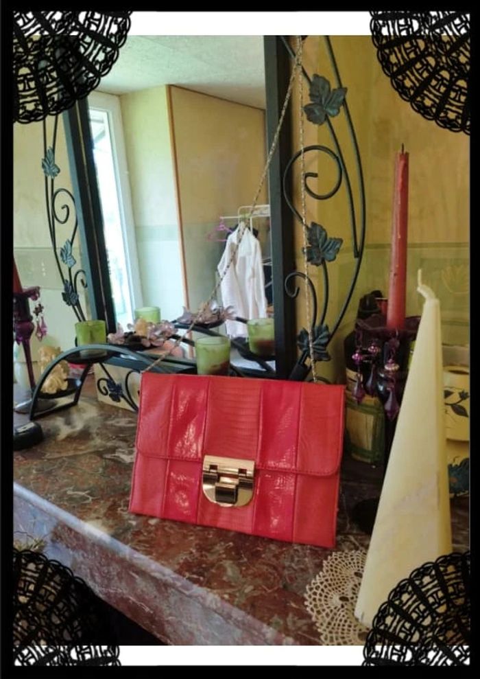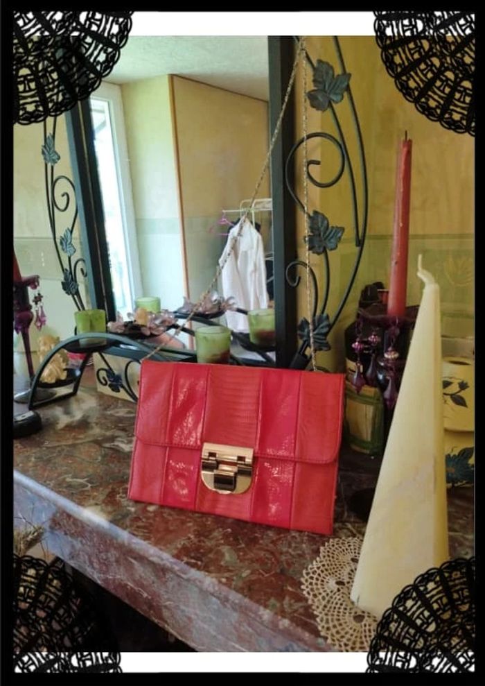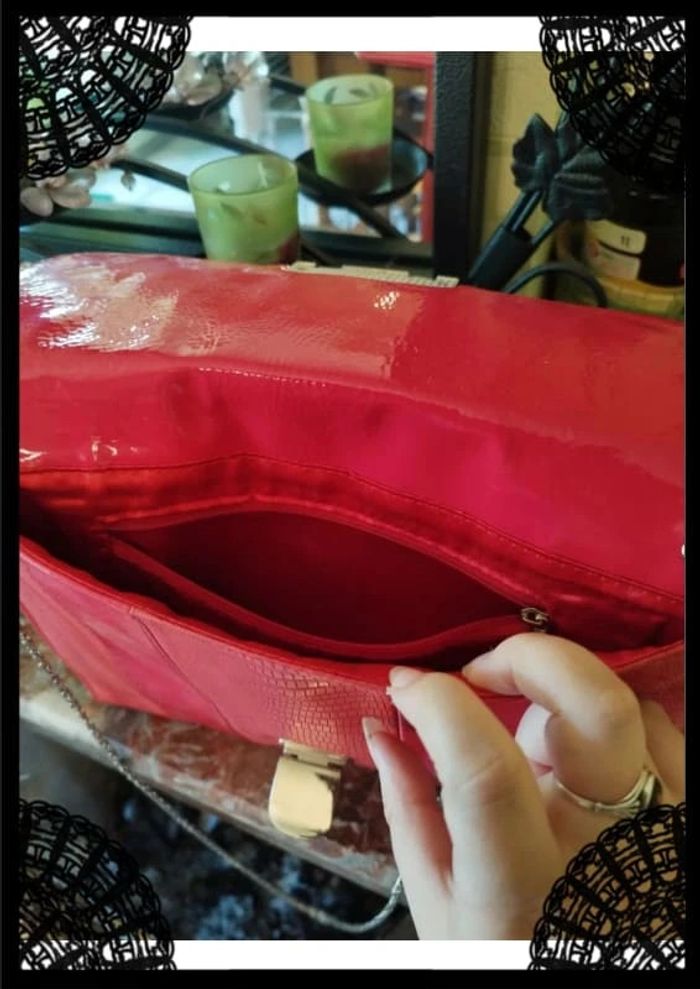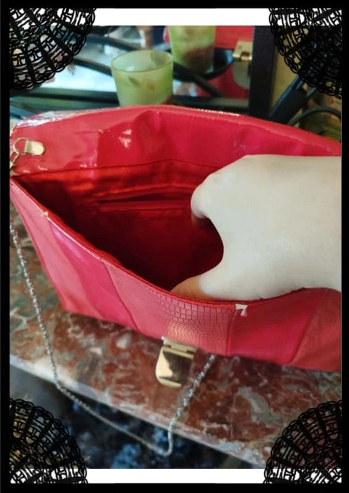 Sac à main pochette rouge similicuir à chaines - photo numéro 19