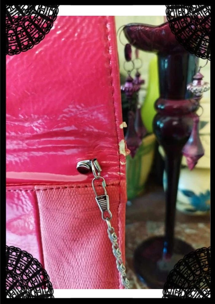 Sac à main pochette rouge similicuir à chaines - photo numéro 8