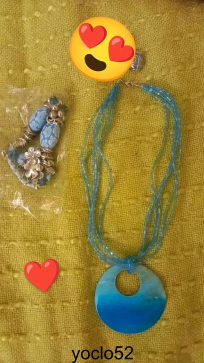 Parure bijoux bleu collier bracelet boucles y2k - photo numéro 1