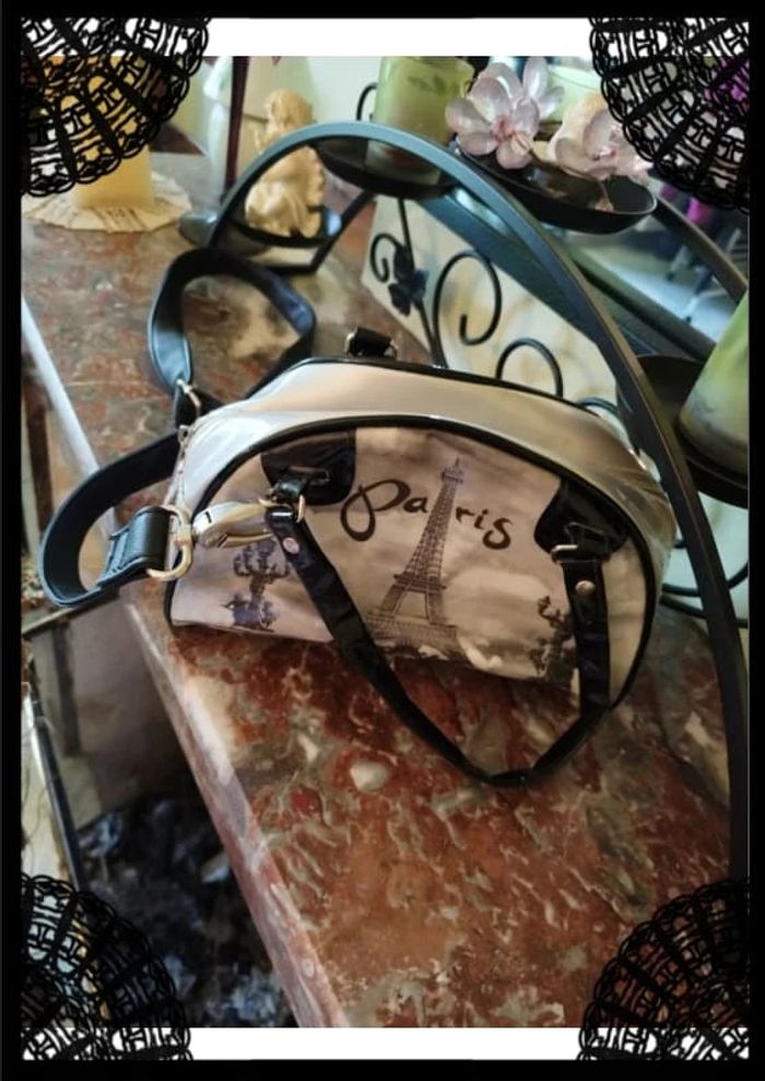 Sac à bandoulière noir gris Paris rond - photo numéro 1