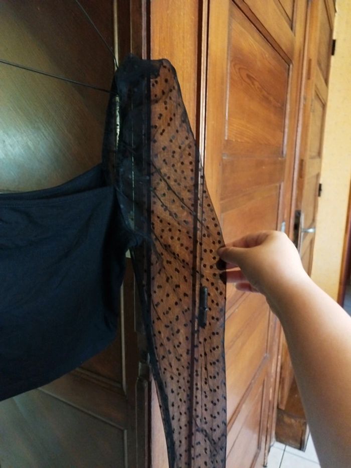 Top noir manches pois vintage polka dot M/38 - photo numéro 5