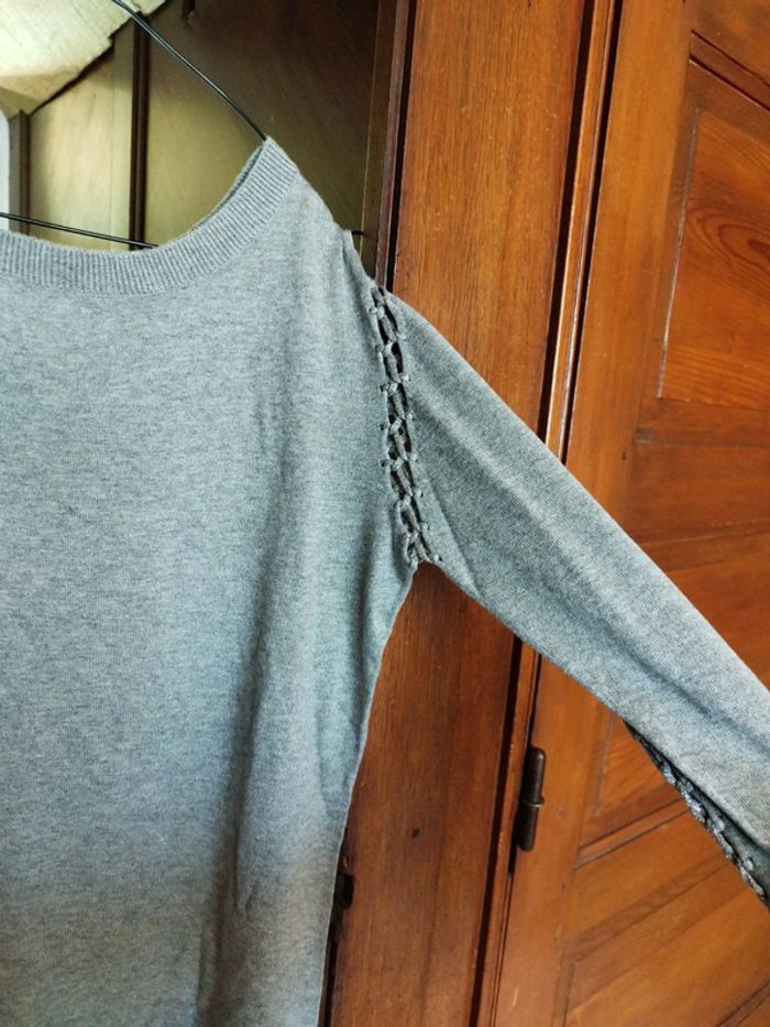 Pull gris soie manche tressé vintage M/38 y2k - photo numéro 8