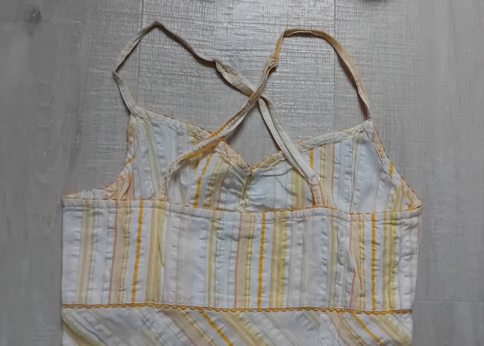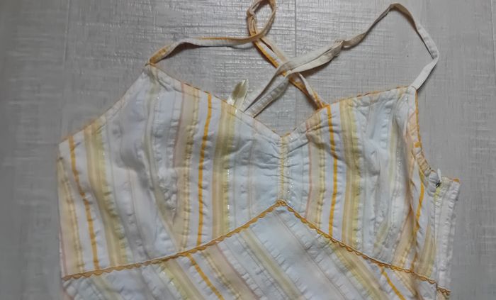 En très bon état. Fermeture sur le côté, bretelles croisées dans le dos.