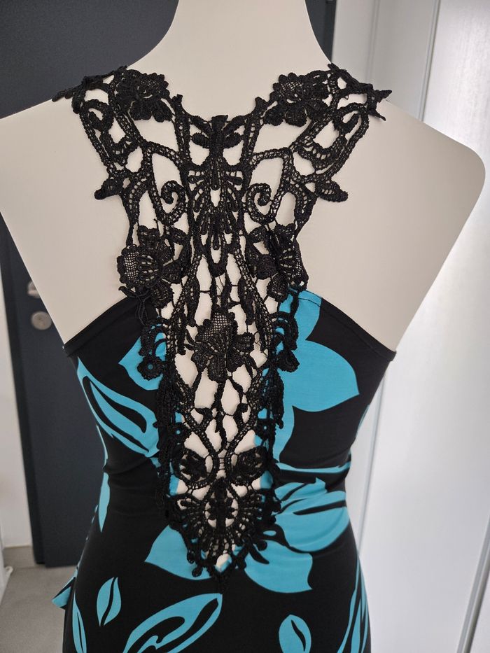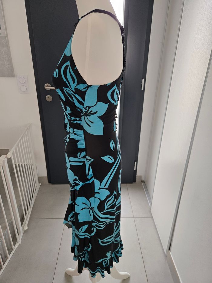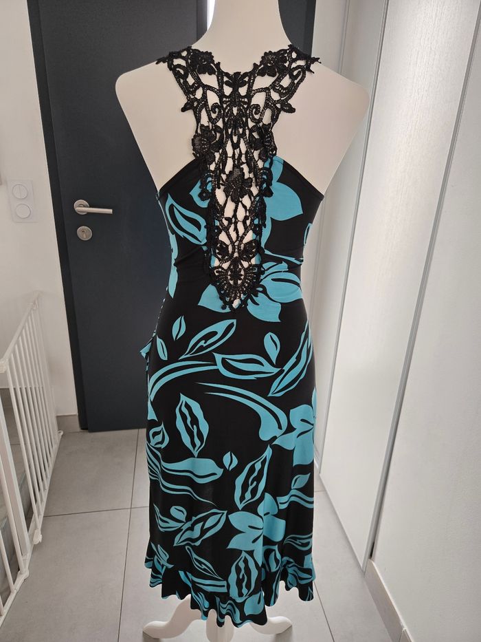 Magnifique robe moulante noir et bleu. Idéal pour l'été. Robe longue qui épouse bien les formes et décolleté. Portée qu'une fois comme neuf. Pensez à faire des lots c'est super intéressant !! 😊😊