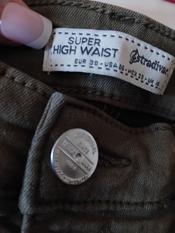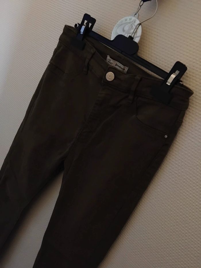 Pantalon en jeans kaki taille haute 38 - photo numéro 9