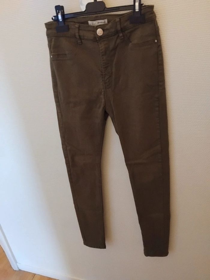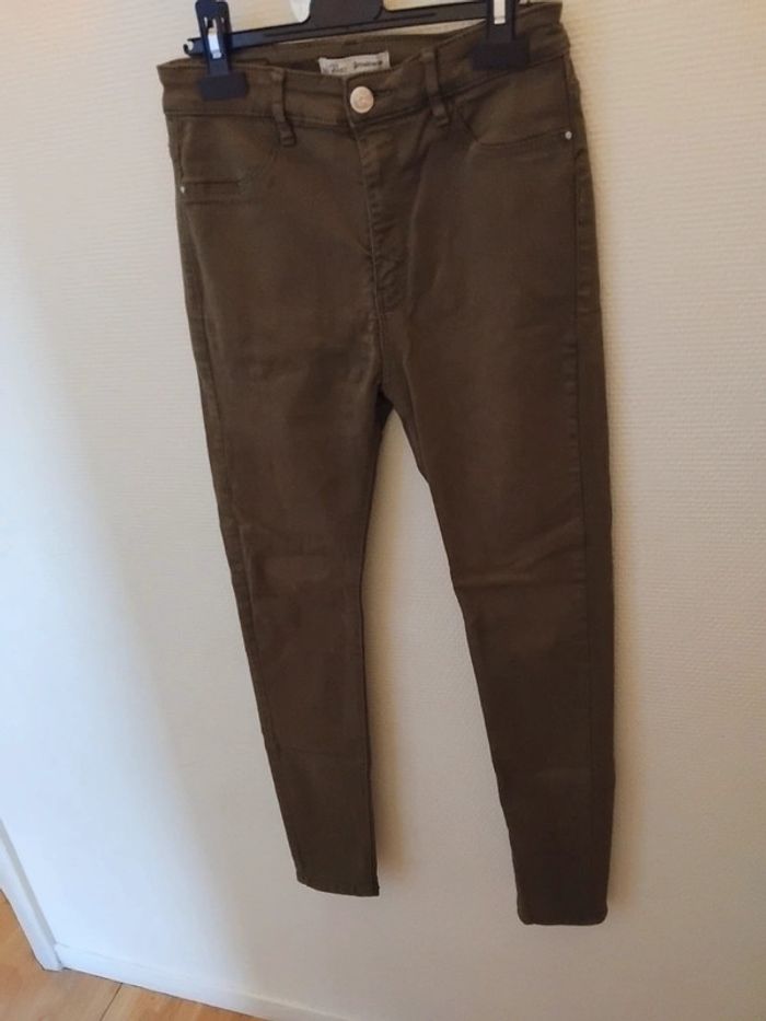 Pantalon en jeans kaki taille haute 38 - photo numéro 1