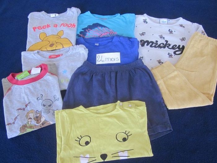 24 mois, pyjama velours 2 pièces + short + 3 hauts ml légers + 3 hauts mc, scoubidou, disney, tissaia