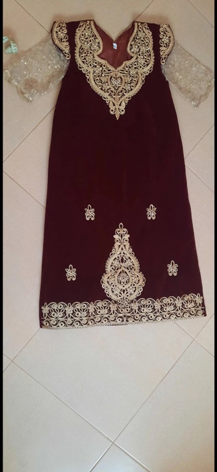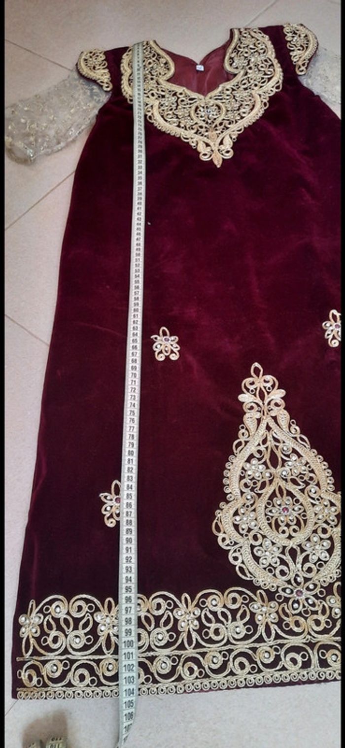 Robe traditionnelle fergani 10 ans portée 2 fois seulement excellent état. Les dimensions sont sur les photos,pour plus d'informations n'hésitez pas. PAS DE RETOUR SVP.