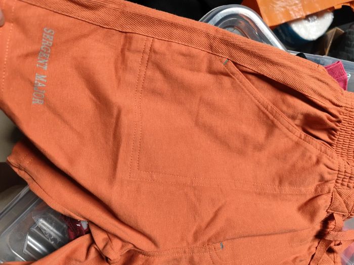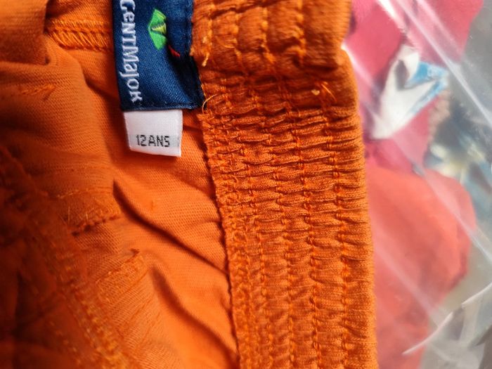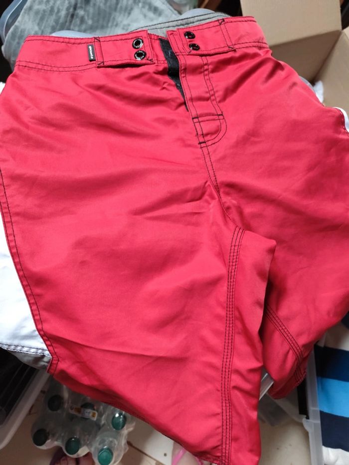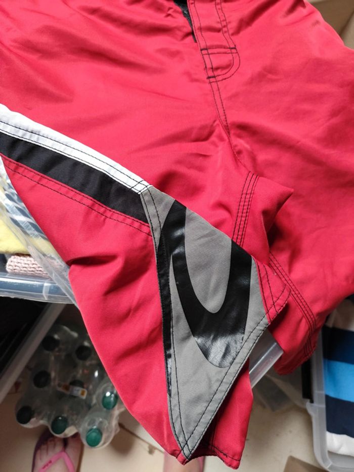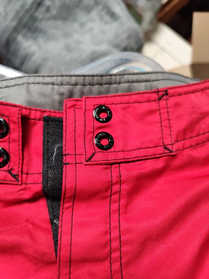 Un short plutôt un peu long rip curl rouge et noir, fermé par scratch Un short orange sergent major