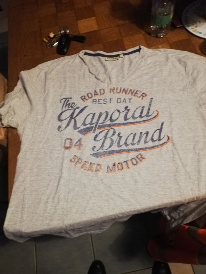 Tee shirt kaporal manches courtes col en v Dessin légèrement passé mais c est fait exprès.