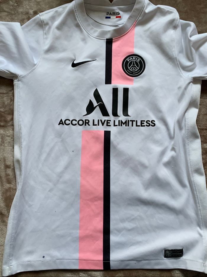 Teeshirt de football Messi au PSG En très bon état malgré 2 taches Aucun autre défaut à noter Taille XS / marque Nike authentique Envoie rapide et soigné