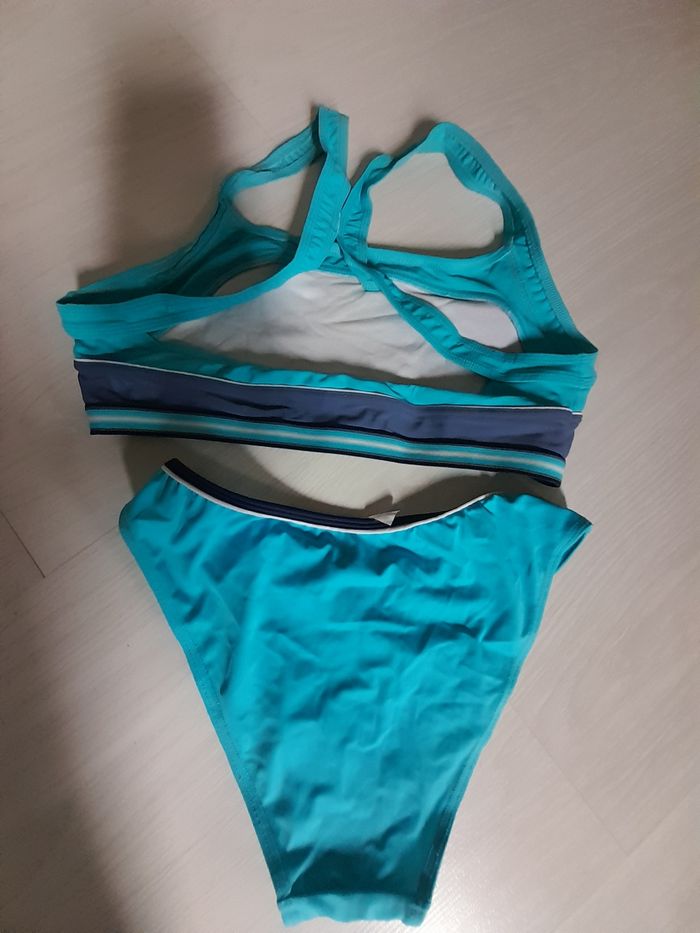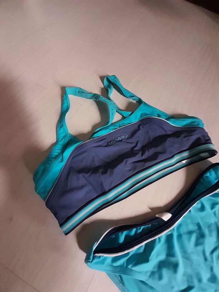 Maillot de bain 2 pièces T 42 Marque DÉCATHLON Couleur bleu et bleu marine Haut brassière Très très bon état