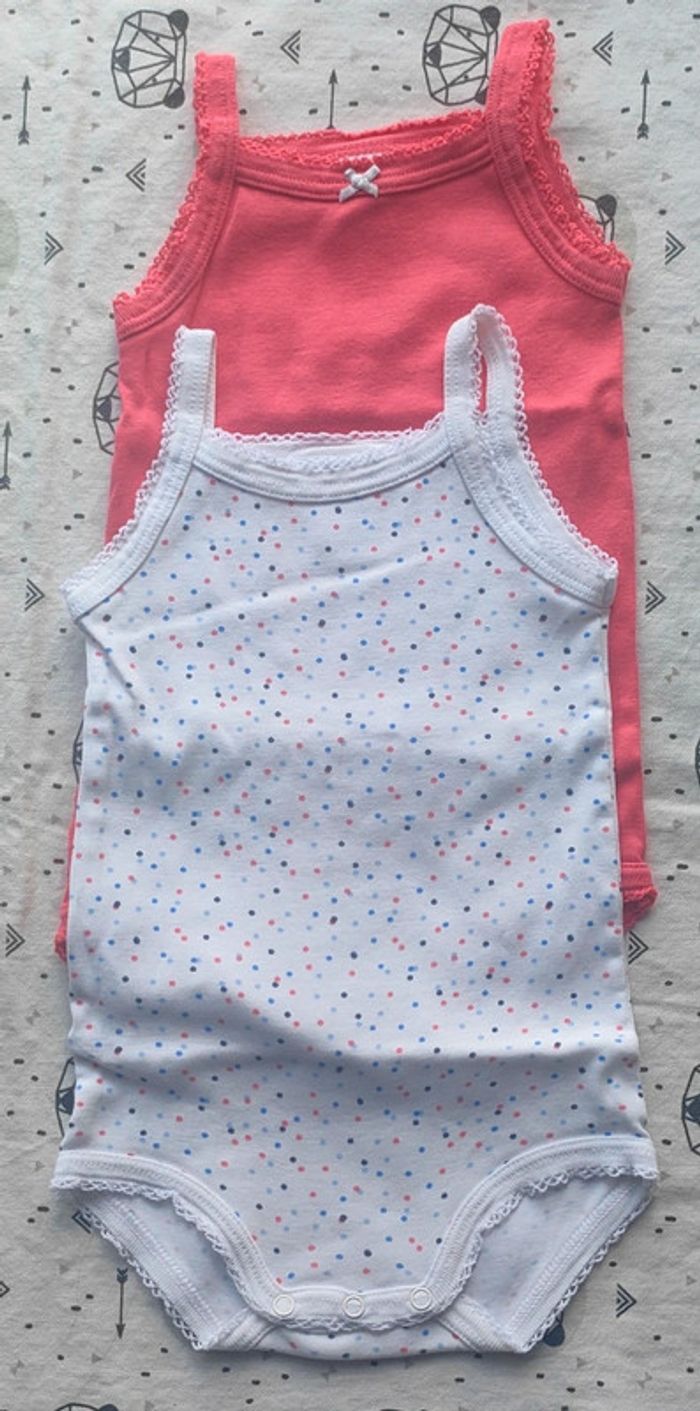 Lot de 2 bodies MC en très bon état de la marque Petit Bateau pour fille taille 6 mois #neezia33240lotbodiesfille6mois