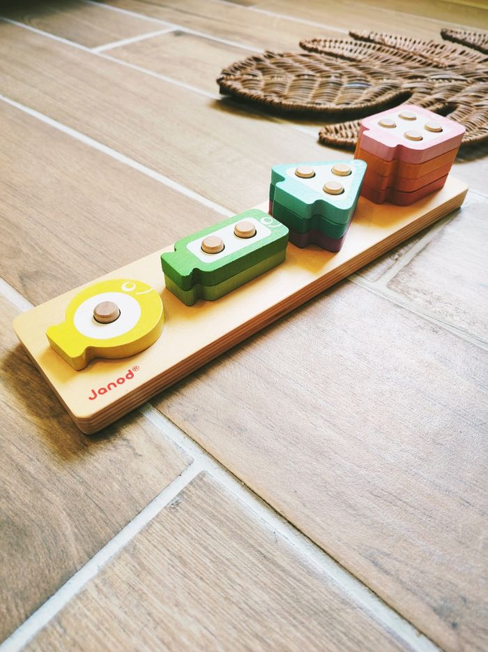 🐠 Poissons en formes géométriques à trier et empiler en bois marque Janod