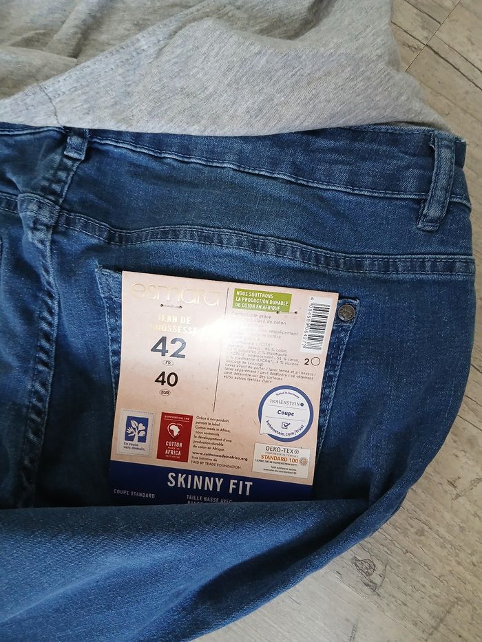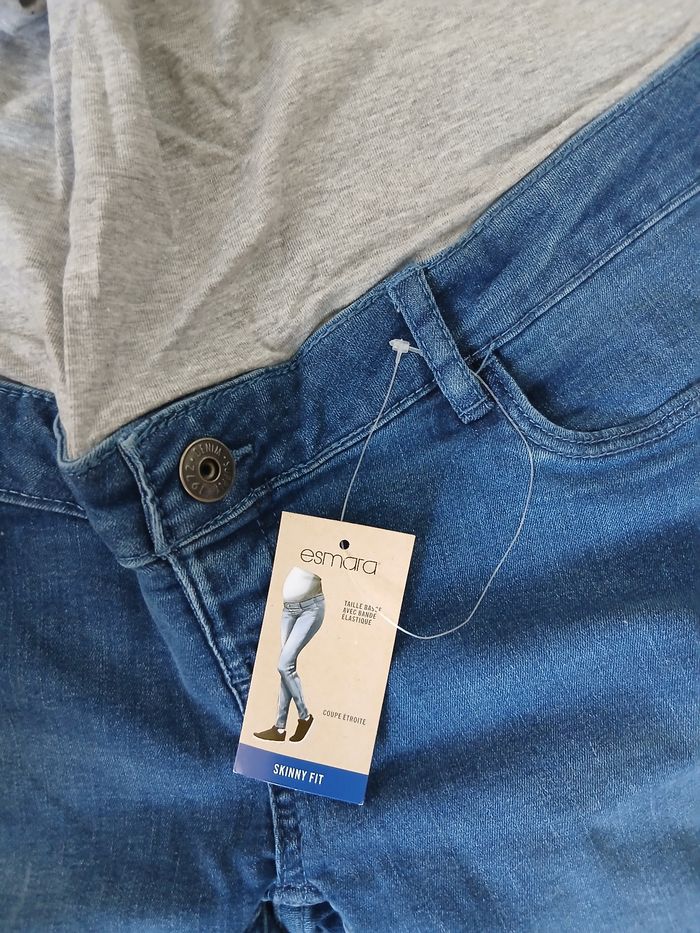 Jean de grossesse skinny fit. France 42. Europe 40. Coupe standard. Taille basse avec bande elastique. Coupe étroite. 86 % coton. Esmara neuf.