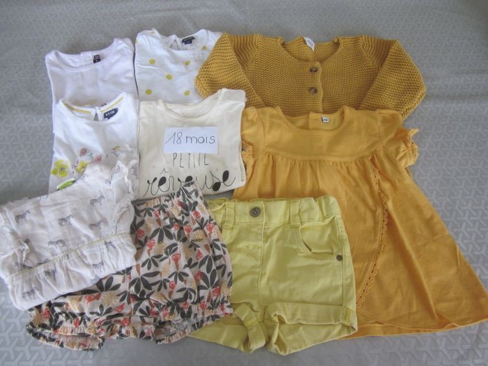 18 mois, gilet + haut/robe mc + 4 hauts mc + 5ème offert (tâche) + 2 shorts, à assortir selon vos envies, tao, sergent major, kiabi