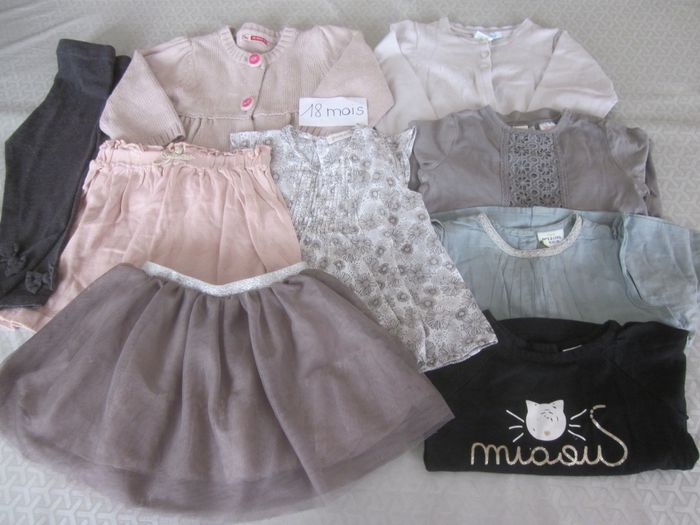 18 mois, 2 gilets + haut ml léger + 2ème offert (tâche) + 2 hauts sans manche + legging + 2 jupes, à assortir selon vos envies, tao, zara, dpam, obaibi, grain de blé