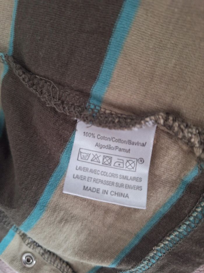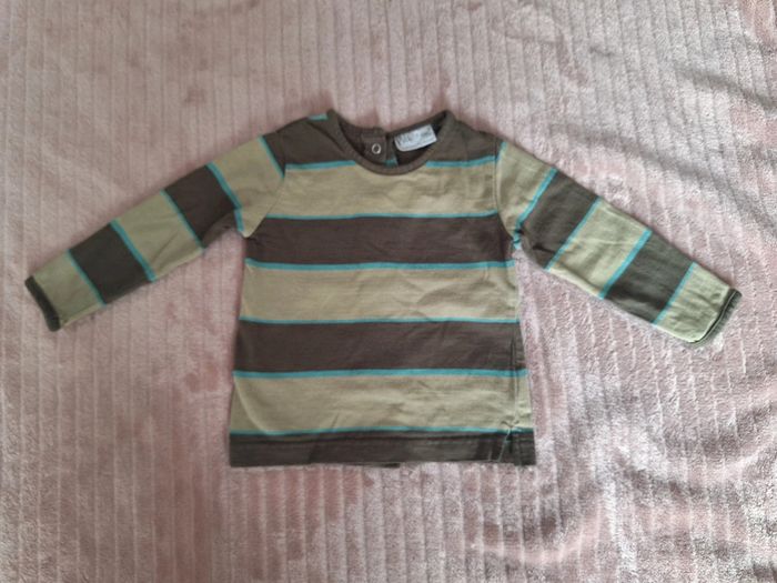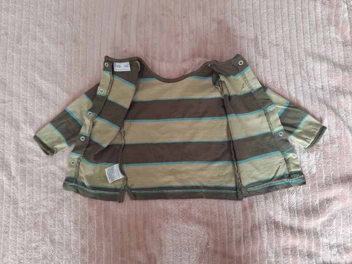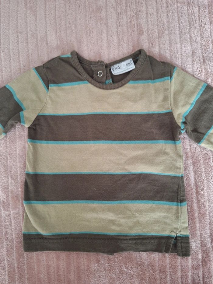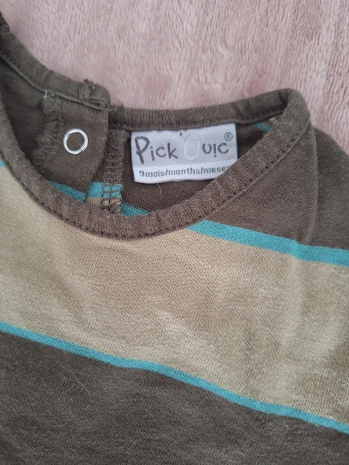 T-shirt en très bon état à manches longues il s'ouvre entièrement dans le dos grâce à des pressions taille 9 mois , de marque Pick Ouic 100 % coton