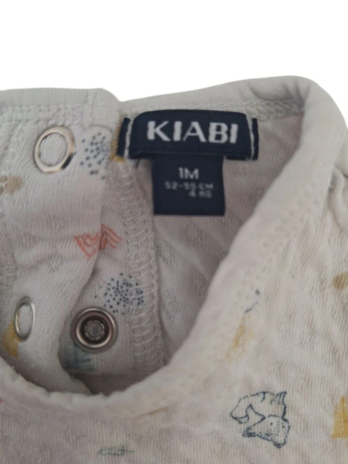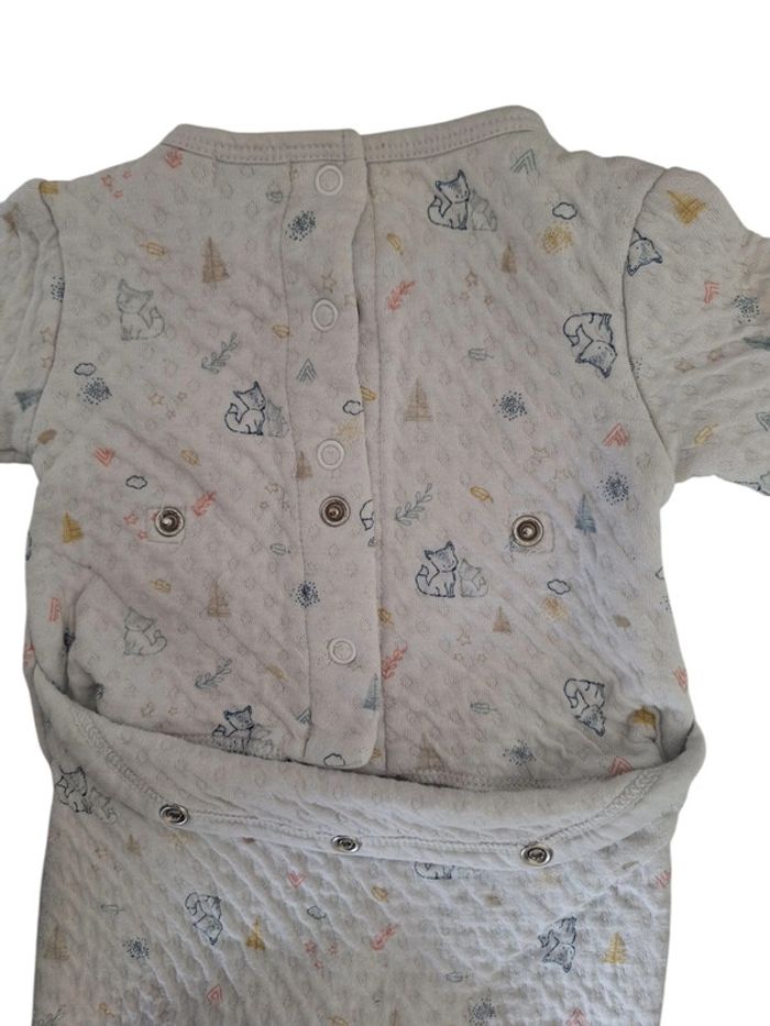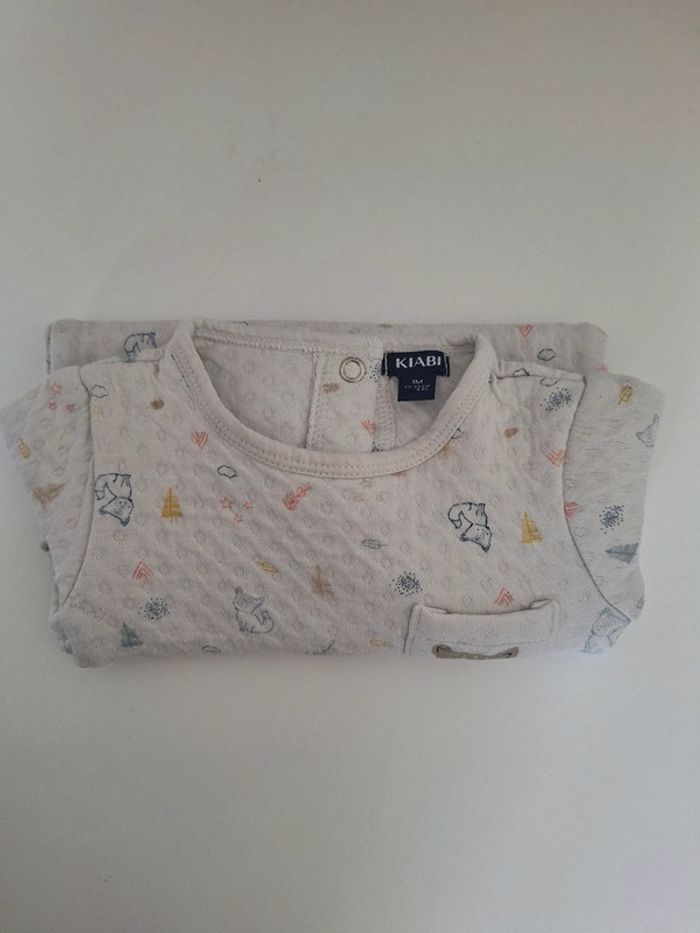 En très bon état ce pyjama Kiabi avec des petits motifs de chat et autres, taille 1 mois , il est assez épais et doux Etiquette coupée