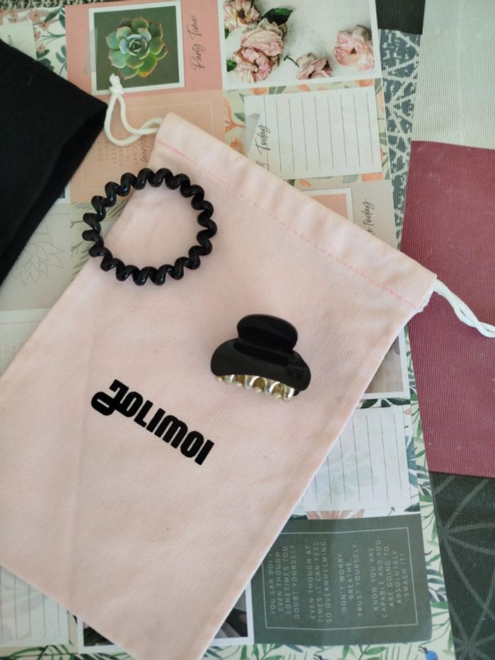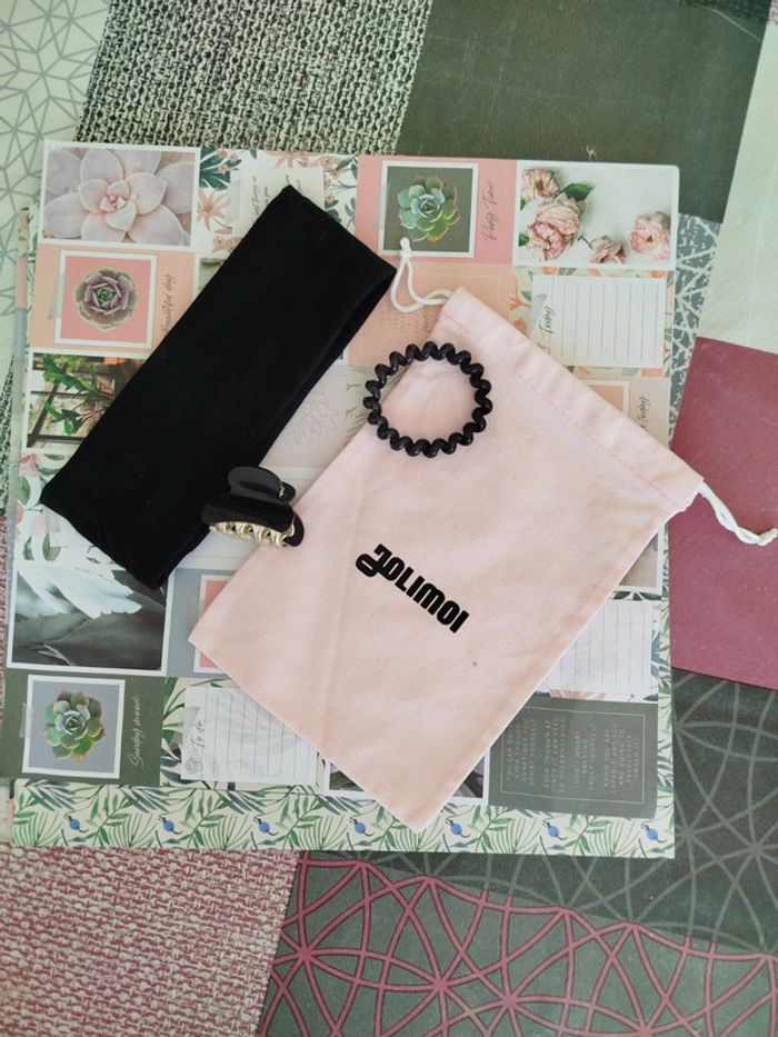 Lot d'1 petit sac en toile rose avec un galon pour le fermer hauteur 21 cm largeur 14 cm j'y rajoute un chouchou élastique et une pince à cheveux légèrement abîmée mais encore en très bon état juste la couleur qui est parti il y a également un bandeau élastique noir pour les cheveux