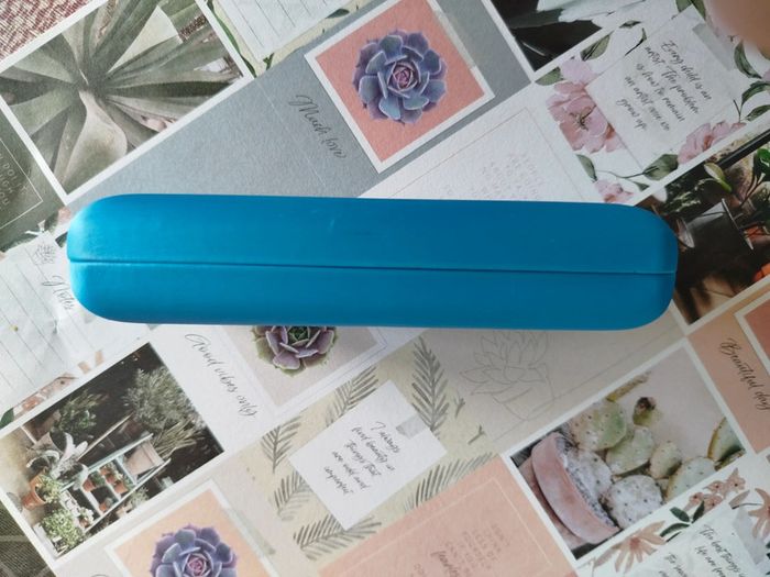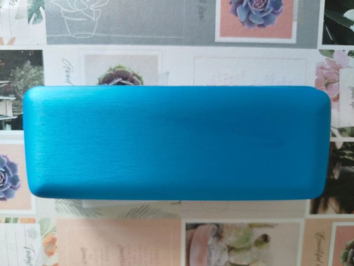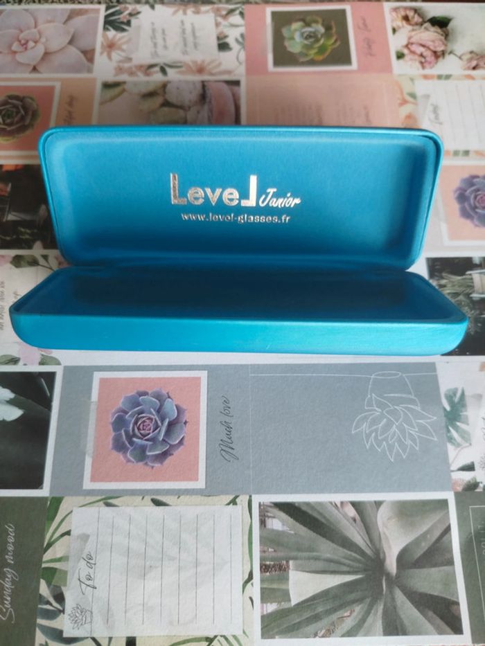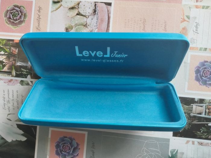 Boitier lunette en très bon état à fermeture magnétique, bleu, marqué a l'intérieur Level Junior 15 x 6 x 3 cm