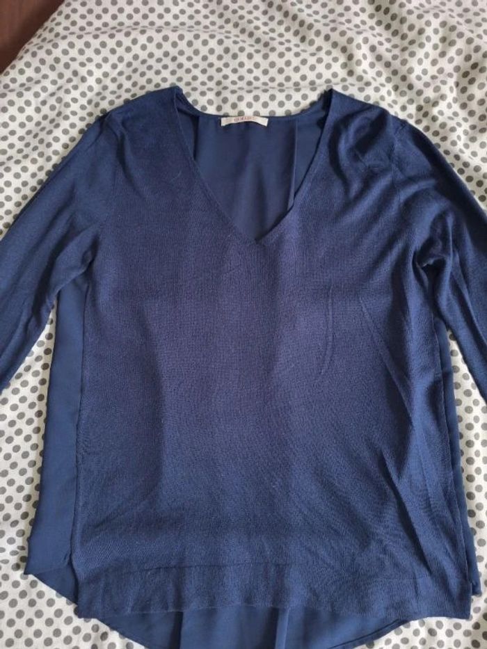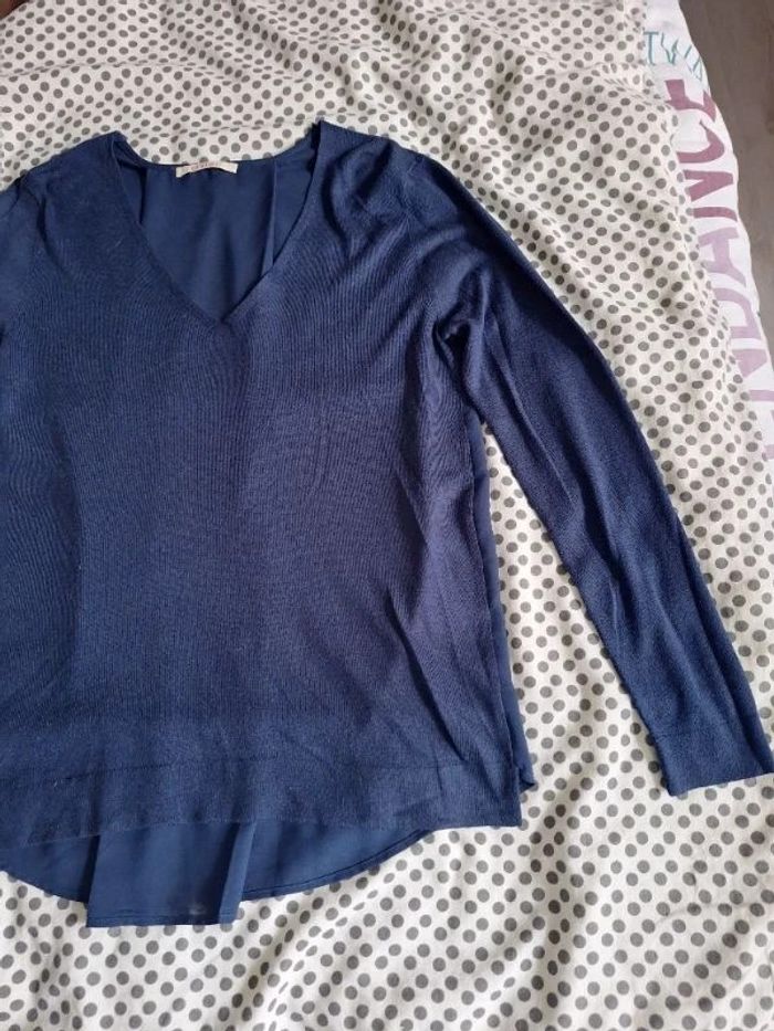 Pull femme bleu marine 38 / 40 bi-matière très bon état - photo numéro 2
