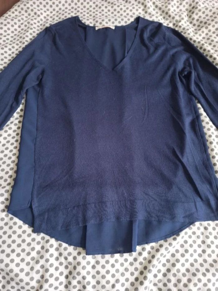 Pull femme bleu marine 38 / 40 bi-matière très bon état - photo numéro 1