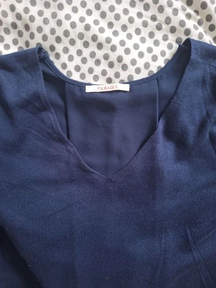 Pull femme bleu marine 38 / 40 bi-matière très bon état - photo numéro 7