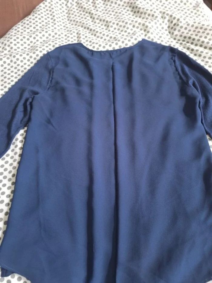 Pull femme bleu marine 38 / 40 bi-matière très bon état - photo numéro 3
