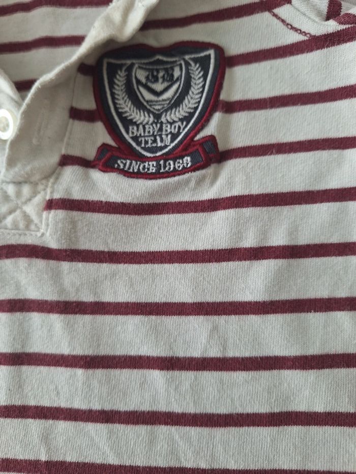 T-shirt en bon état motif marine et rouge rayure plutôt de couleur Bordeaux