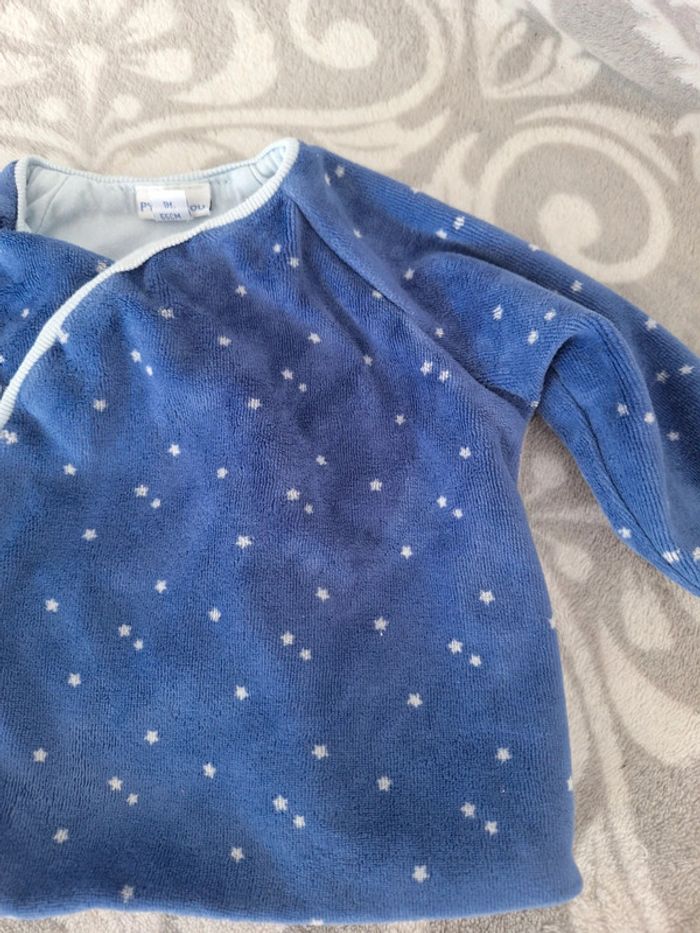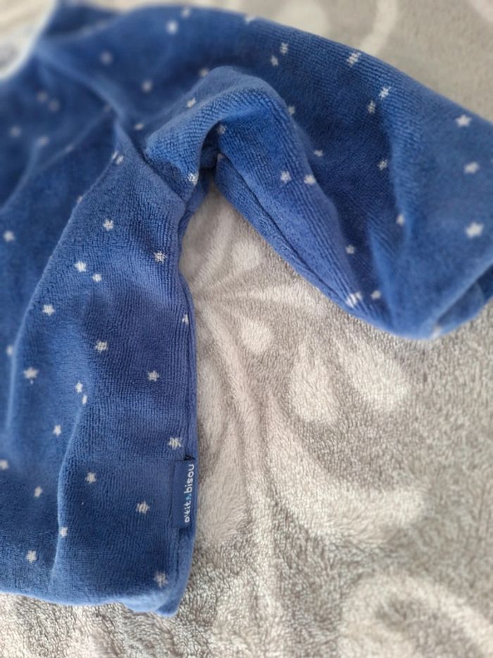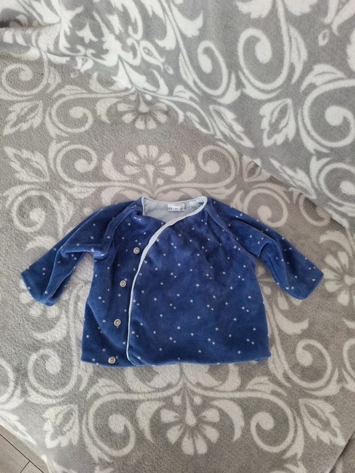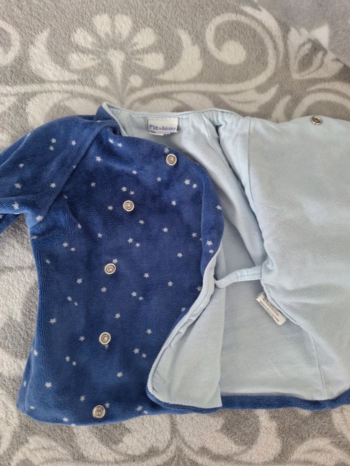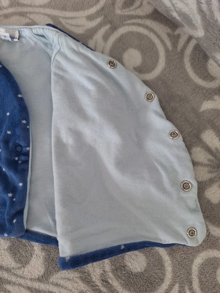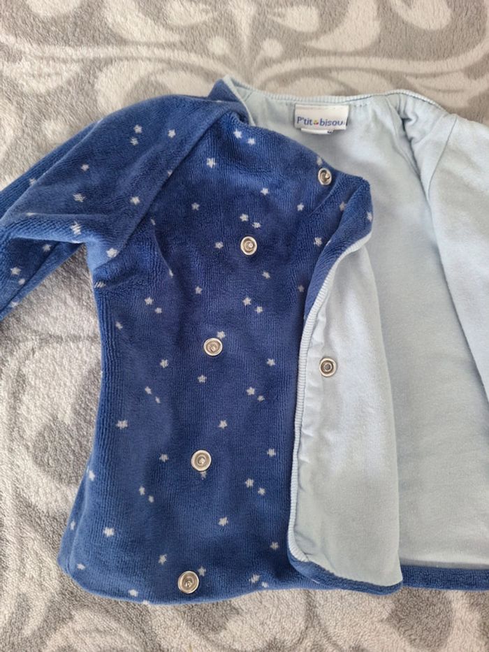 En très bon état , ce cache-cœur bleu très doux intérieur bleu ciel se ferme par pression de marque P'tit bisou, à manches longues Coton / Polyester