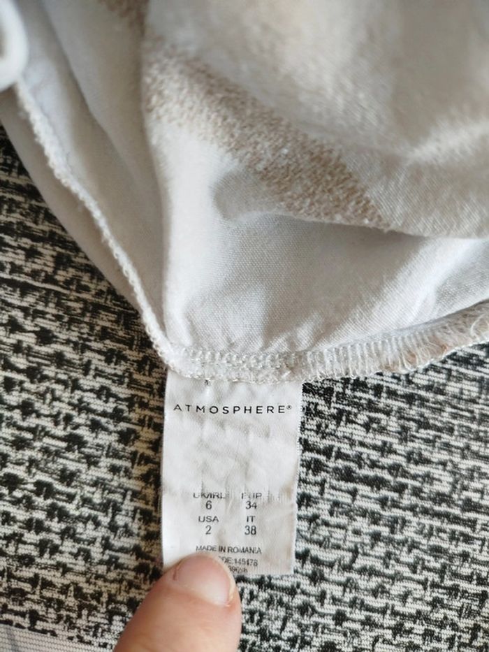 Chemisier femme de marque atmosphère, taille 34 légèrement peluché surtout à l'intérieur Manches 3/4 qui peuvent se retrousser et s'attacher au bouton un pli dans le dos et un petit fil de tiré, qui peut être repris.