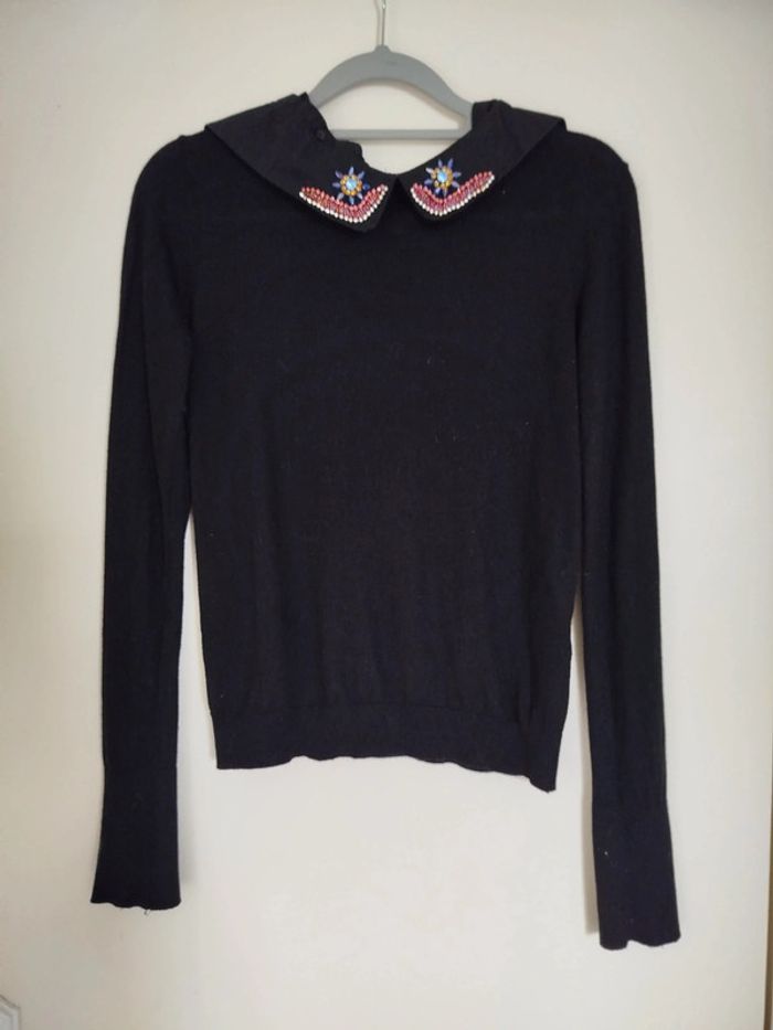 Pull noir avec très beau col taille S Zara