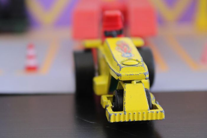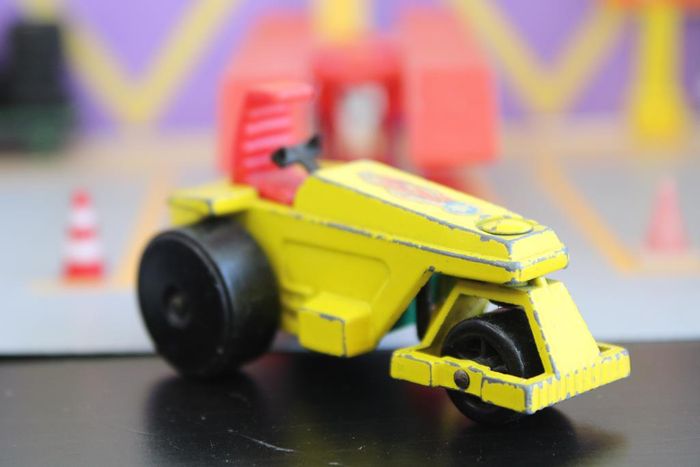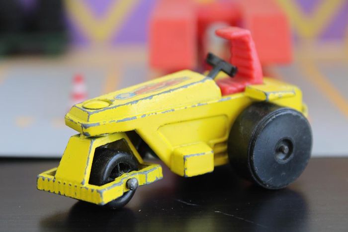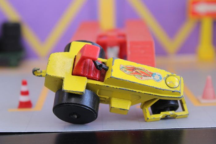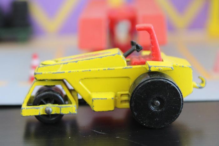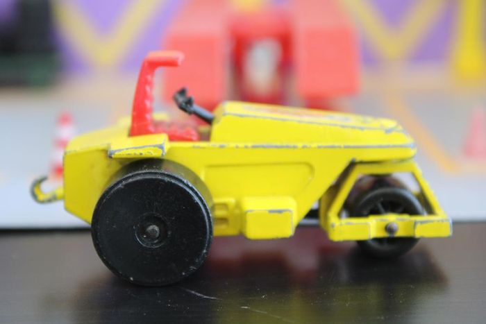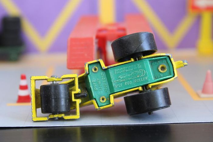 Rouleau compresseur miniature fantaisiste Modèle : Rod roller Echelle : environ 1:77 Couleur : Jaune Intérieur : Rouge Chassis : Plastique vert Série : Superfast N° : 21 Fabricant : Matchbox Année de production : 1973 En bon état. Les roues sont directionelles Les axes de roues ne sont pas tordus. Stickers présent et encore présentable Manques de peinture. Réponds avec plaisir aux demandes d'informations complémentairre Réponse rapide envoi soigné dans les meilleurs délais