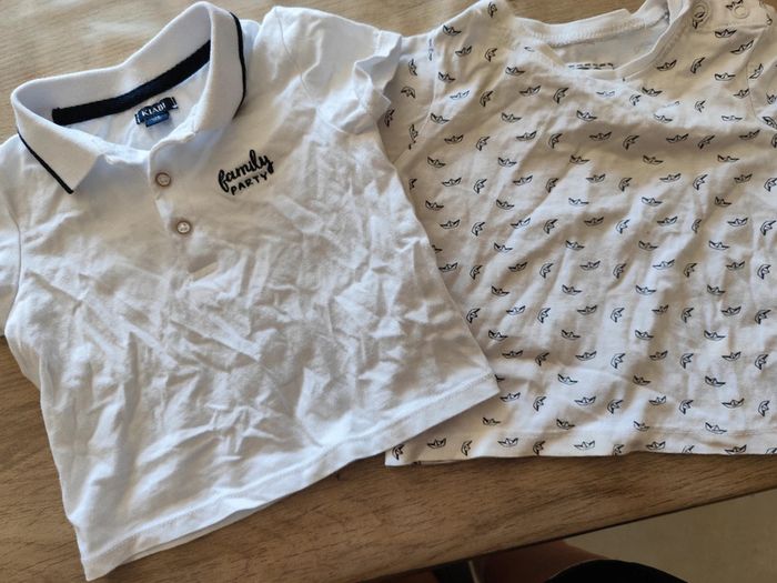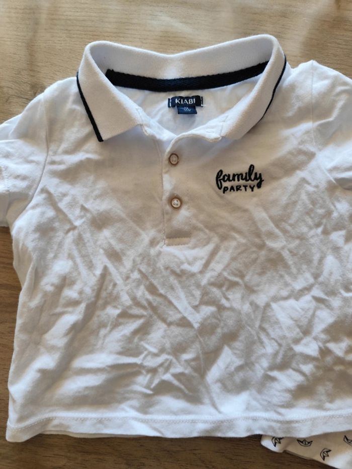Un T-shirt polo manches courtes "family party", Kiabi, jamais mis Un t-shirt npo avec des motifs bateaux, TBE 12 mois pour les 2 N'hésitez pas à faire un lot pour des réductions. Envoi rapide