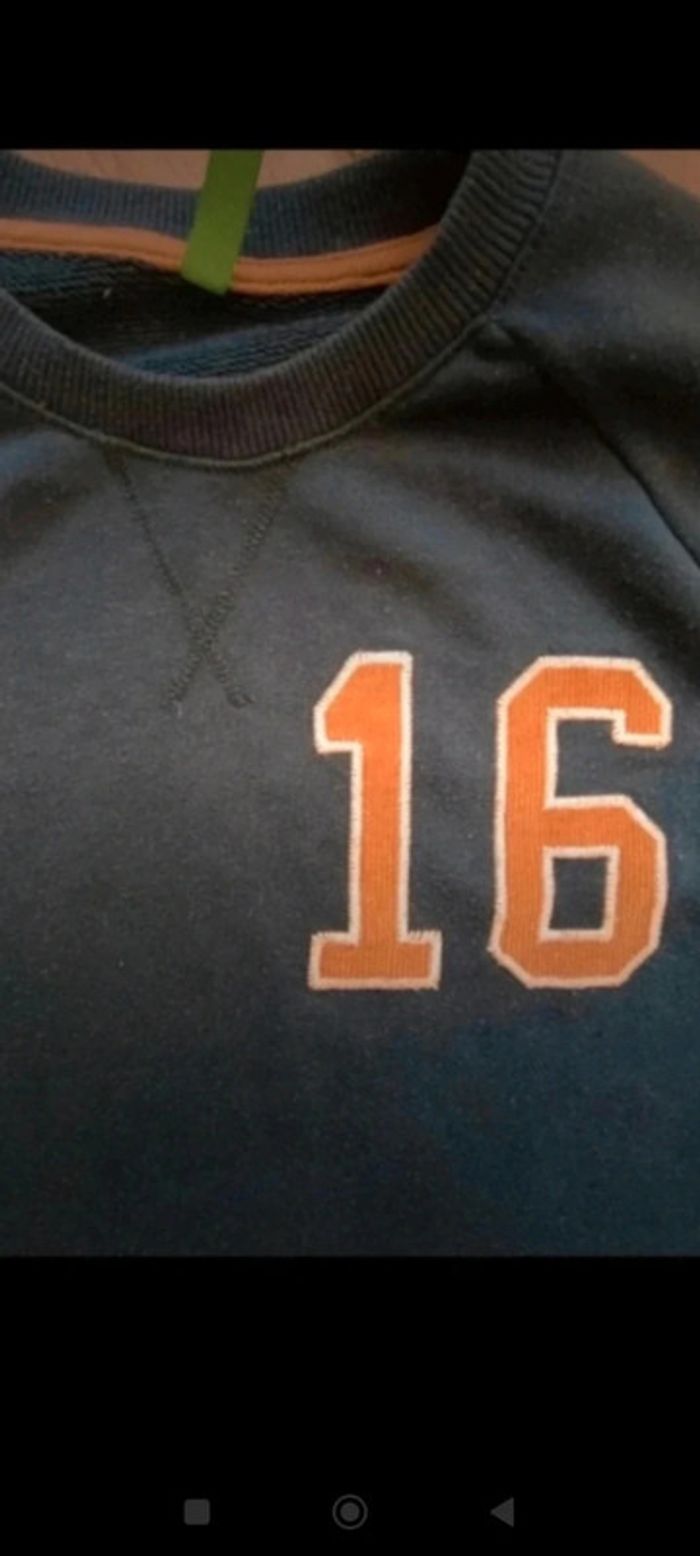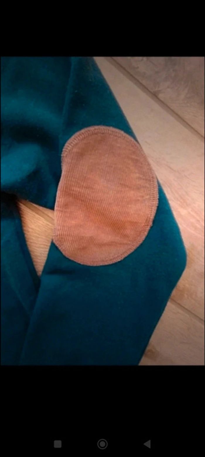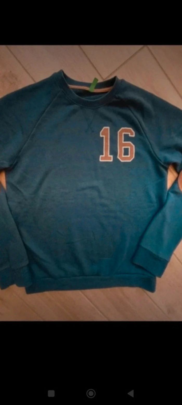 Joli Sweat Benetton 13-14 ans bleu à motif et coudières marrons Bien porté, un peu bouloché #mariol69110garcon14ans