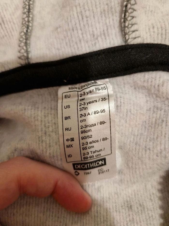 Veste chaude acheté chez decathlon. Taille 2/3 ans ( taille en 3 ans ) Reste la colle de l'étiquette prénom de mon fils.