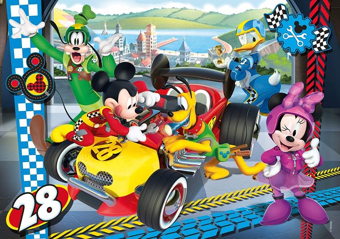 Clementoni puzzle Disney 08514 Supercolor Mickey and The Roadster Racers Puzzle de 30 pièces de dimensions 33,5 x 23,5 cm. Les puzzles sont conçus spécialement pour les enfants et à l’effigie de leurs personnages préférés. La qualité des matériaux et l’utilisation d’une technique d’impression exclusive rendant ces images belles, vives et résistantes vous permettront de jouer encore et encore. Fabriqué en Italie. Produit neuf dans son emballage d'origine non ouvert. NE CONVIENT PAS AUX ENFANTS DE MOINS DE 3 ANS !!