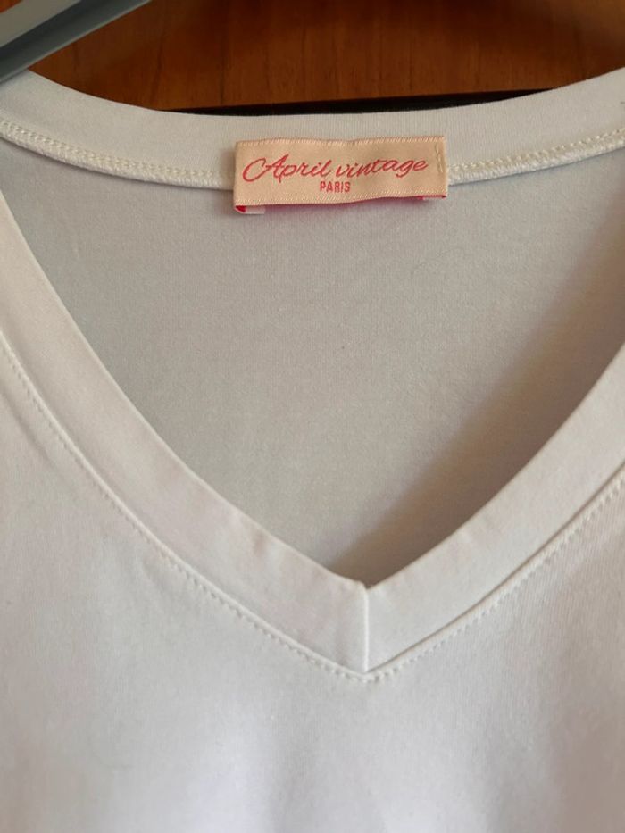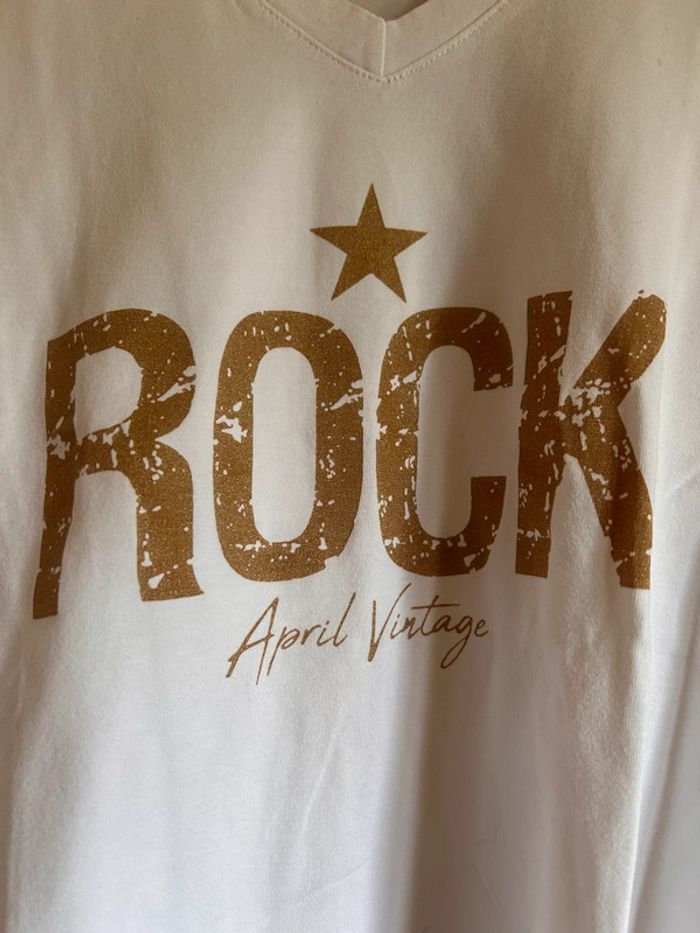T-shirt blanc col v rock April Vintage