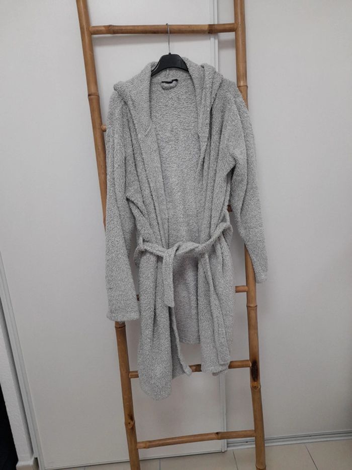 Peignoir polaire gris avec capuche, poches & ceinture taille XL - photo numéro 1