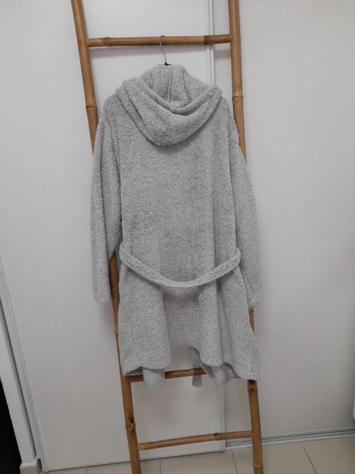 Peignoir polaire gris avec capuche, poches & ceinture taille XL - photo numéro 3