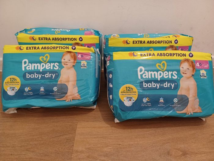 4 paquets de Couches Pampers baby-dry T4+