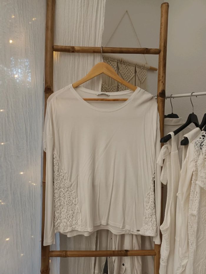 Haut blanc manches longues avec dentelle Tiffosi taille S Peu porté mais un trou visible en photo