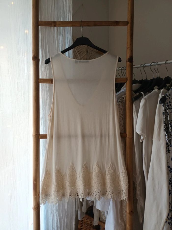 Joli haut beige crème avec dentelle taille L - photo numéro 4