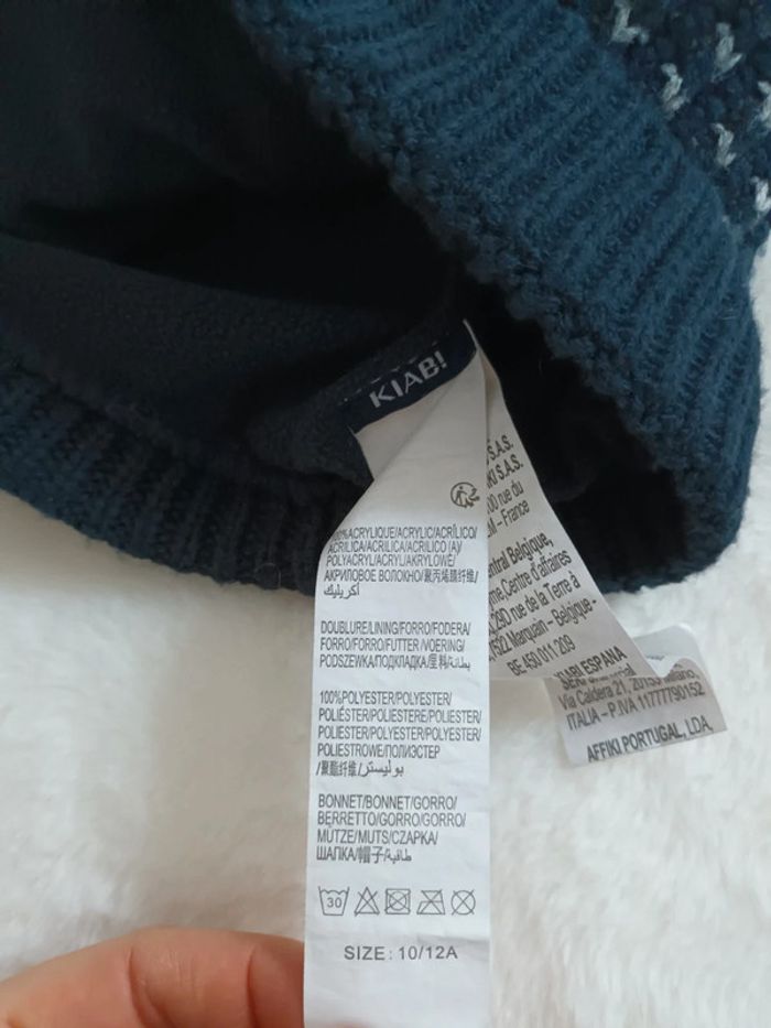 Bonnet marine & gris avec pompon très chaud intérieur polaire taille 10 / 12 ans - photo numéro 3