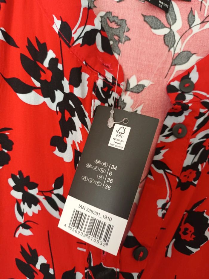 Jolie robe longue rouge fleurie taille 34 neuve avec étiquette 🏷