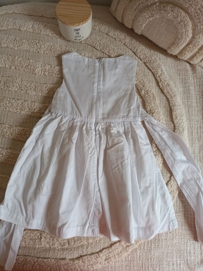 Jolie robe blanche La Compagnie des Petits taille 3 ans une légère tâche au niveau des strass visible en photo mais elle est tellement légère que j'ai l'impression qu'elle ne se voit même pas en photo