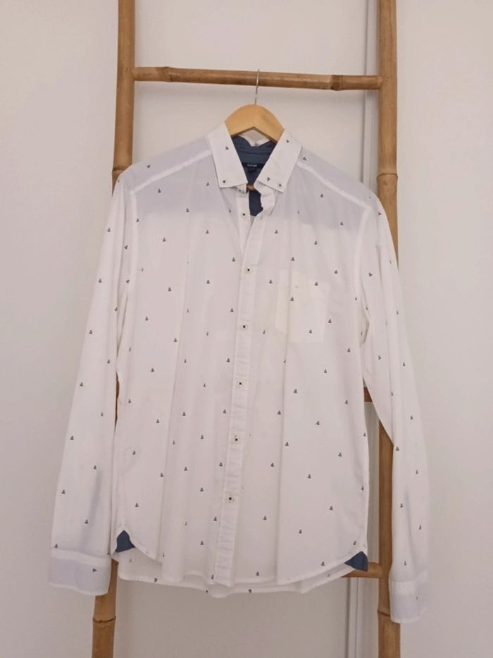 Chemise blanche à motifs homme taille L Portée une seule fois mais une tâche sur la manche droite