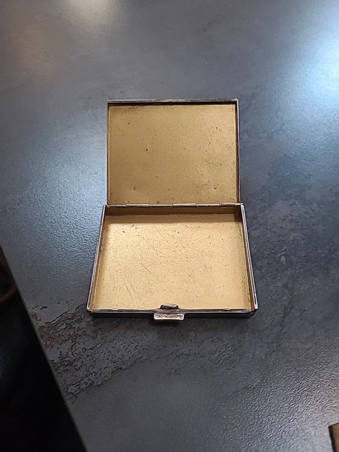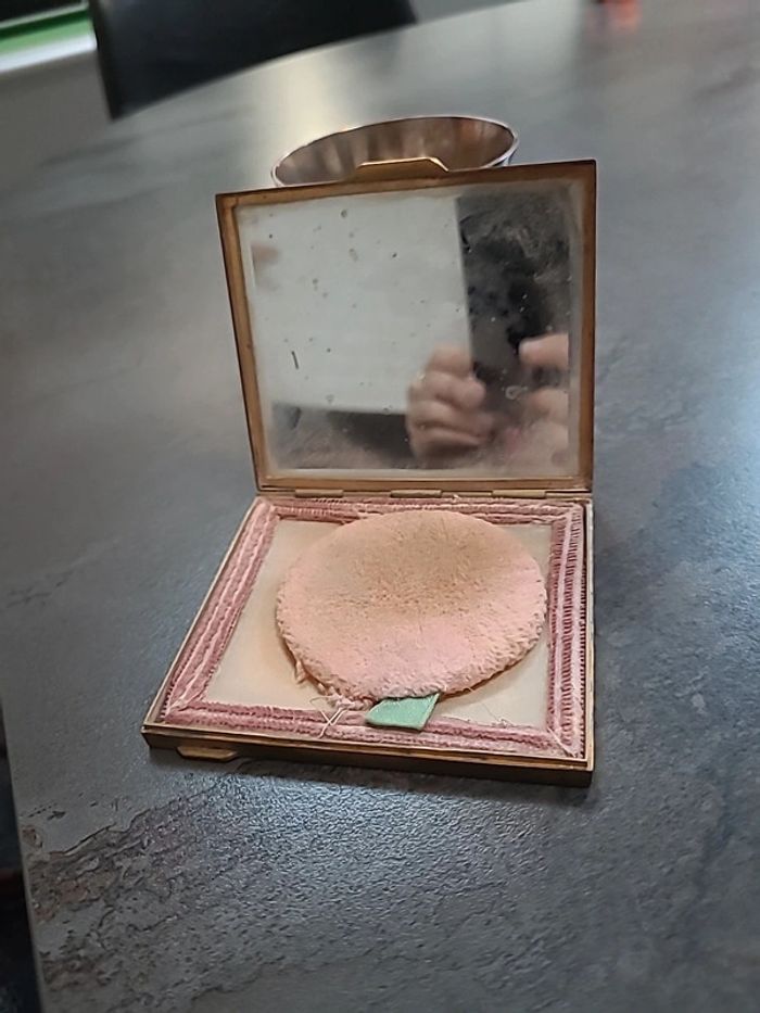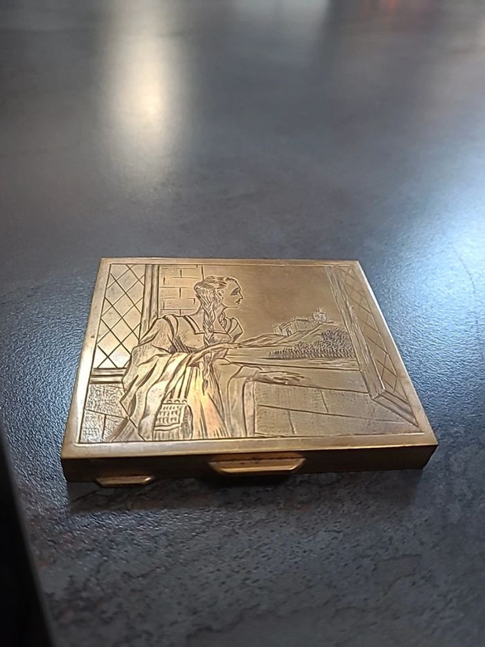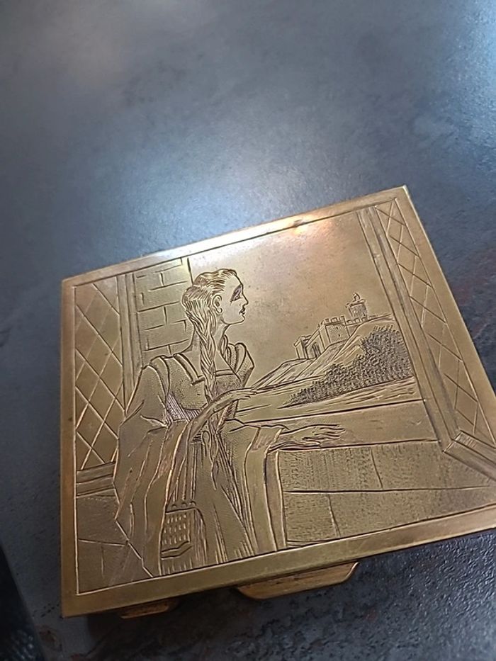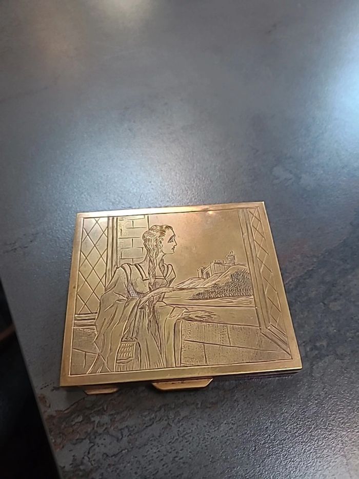 Jolie poudrier gravé Longueur 9 cm Hauteur 8 cm